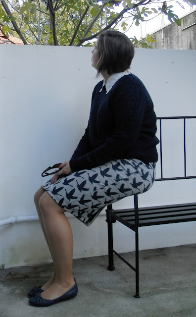 Acho a saia tão formal, que optei usar uns sapatos com um pouco de tacão! Mas podia usar sapatilhas na perfeição!